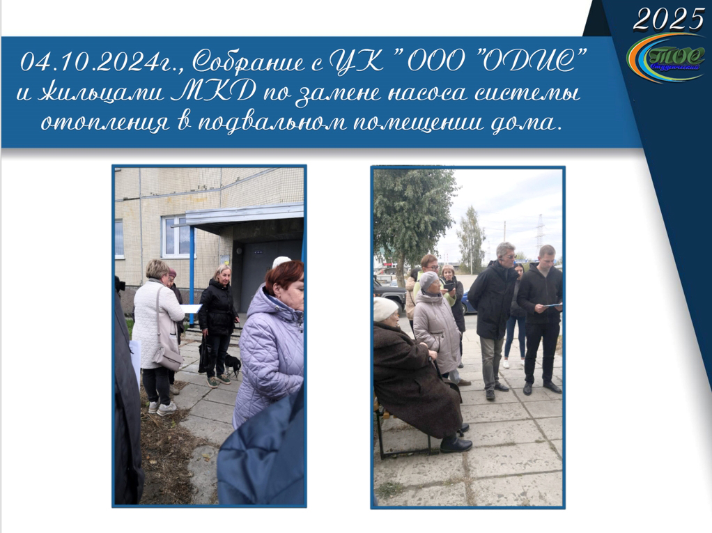 04.10.2024г. Собрание УК «ООО ОДИС» с жильцами МКД по замене насоса в подвальном помещении