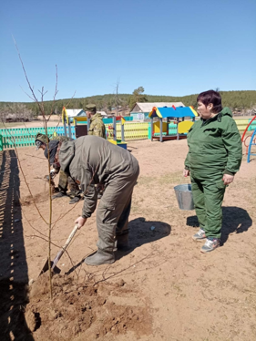 Посадка саженцев на детской площадке в местности Хуртэй в рамках защиты леса