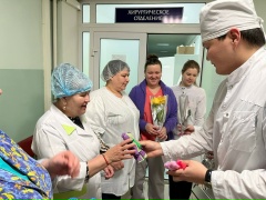Волонтеры вручили женщинам-медикам цветы, открытки и сувениры, с деланные своими здоровья, неиссякаемой энергии, успехов в их благородном труде, а также счастья, любви и благополучия в личной жизни. Особые слова благодарности были сказаны за их самоотверженность, профессионализм и чуткое отношение к каждому пациенту.